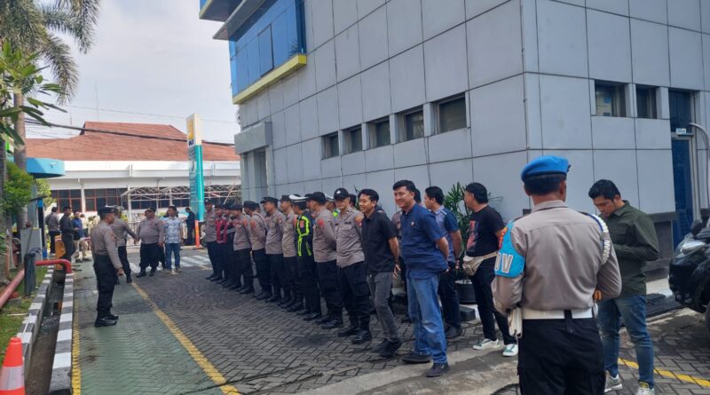 POLRESTA SERKOT_ Kapolsek Serang Polresta Serkot Polda Banten Kompol Andi Suherman pimpin pengamanan dan monitoring aksi unjuk rasa dari Koalisi Masyarakat Peduli Bumi Banten, di Kantor PLN Cabang Serang, Kamis (09/07)