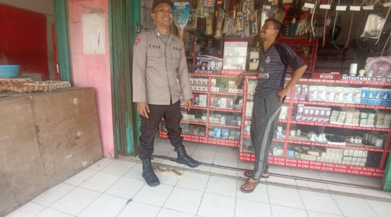 POLRESTA SERKOT_Anggota Bhabinkamtinbmas Polsek Serang Polresta Serkot BRIGPOL Egen melakukan giat sambang di toko sembako di Kelurahan Sukawana Kecamatan Serang Kota Serang, Rabu (10/07).
