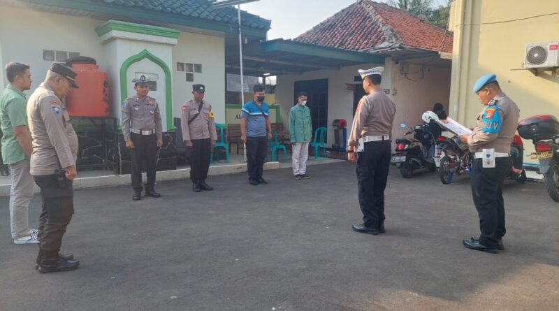 POLRESTA SERKOT_ Kanit Lalulintas Polsek Serang Polresta Serkot Iptu Sumaji pimpin pelaksanaan apel pagi di halaman Polsek Serang Jalan Maulana Hasanudin No 166 Kota Serang, Rabu (10/07).