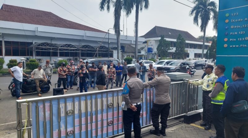 Polsek Serang Polresta Serkot melakukan pengamanan aksi unras di kantor PLN Jl.Diponogoro Kelurahan Kota Baru Kecamatan Serang Kota Serang