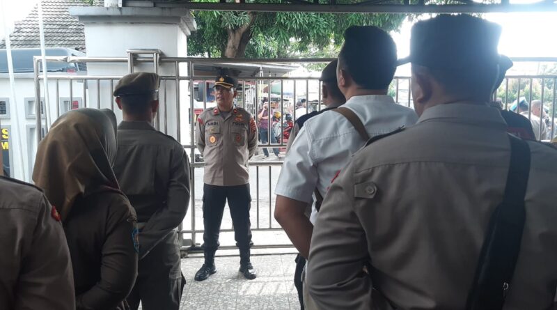 POLRESTA SERKOT_ Kapolsek Serang Polresta Serkot Polda Banten Kompol Andi pimpin apel pengamanan dan monitoring aksi unjuk rasa dari Koalisi Masyarakat Peduli Bumi Banten, di Kantor KPU Kota Serang, Jumat (12/07)