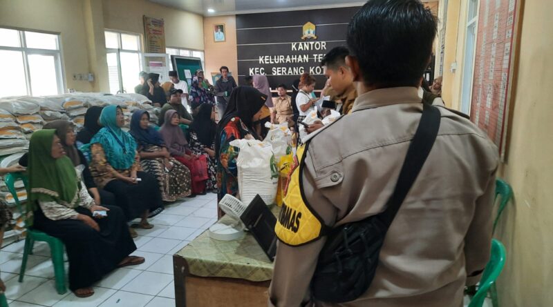 POLRESTA SERKOT – Personel Polsek Serang Aipda Bobi Fernandes melaksanakan kegiatan monitoring penyaluran bantuan ketahanan pangan dari Bulog berupa beras