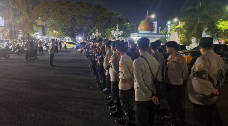 POLRESTA SERKOT – Personel Polsek Serang melaksanakan kegiatan pengamanan konser musik Bejo yang digelar di Alun-Alun Kota Serang pada Minggu