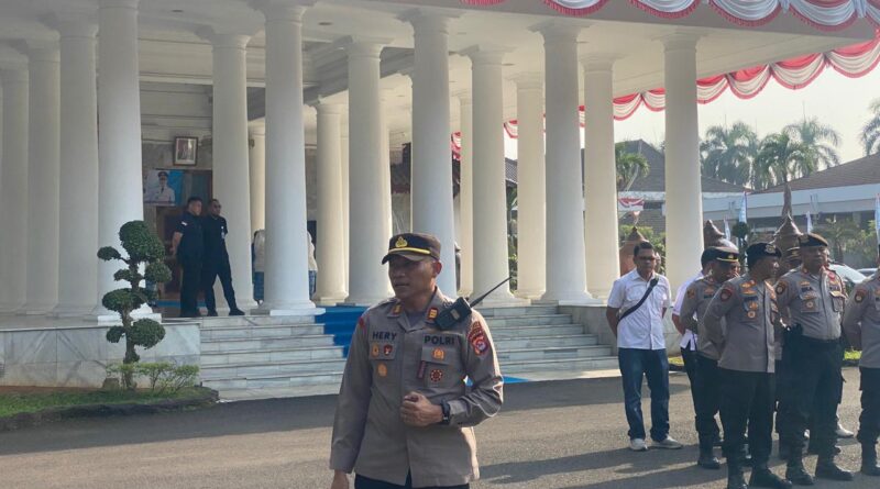 POLRESTA SERKOT_ Personel Unit Lantas Polsek Serang, Aipda Aziz Muslim, melaksanakan kegiatan pengaturan lalu lintas (gatur pagi) di Simpang Kebaharan,