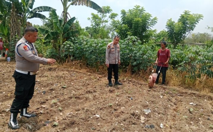 POLRESTA SERKOT – Kapolsek Serang AKP Hery Wiyono, S.H., M.M., bersama dengan anggota melaksanakan pemantauan giat penanaman jagung di lahan